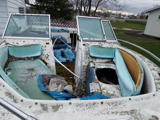 I think it is a 1975. I know it is a Monte Carlo 2 Aerocraft with a straight 6 cylinder, 165 HP Mercruiser Marina engine. I got it from a friend about 3 years ago with the intentions of fixing it up ... 's been sittin'. It needs a new floor. The seats you see are just setting there unattached. I've never attempted to start it. For someone who has the time. It needs a lot of work. I don't know how to transport it because the trailer won't make it far, and I am keeping it. The body seems to be solid.