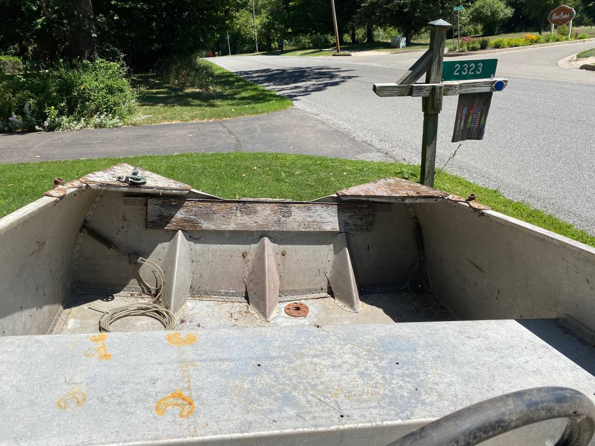 Super cool little boat! Very sturdy all aluminum construction. Center cockpit, includes original steering bracket (not sure if wheel is original). Needs a little work to keep it floating - the floor has a thin spot - pop rivet and seal a piece of aluminum sheet and you're ready to go! Save this classic boat! Delivery negotiable.
