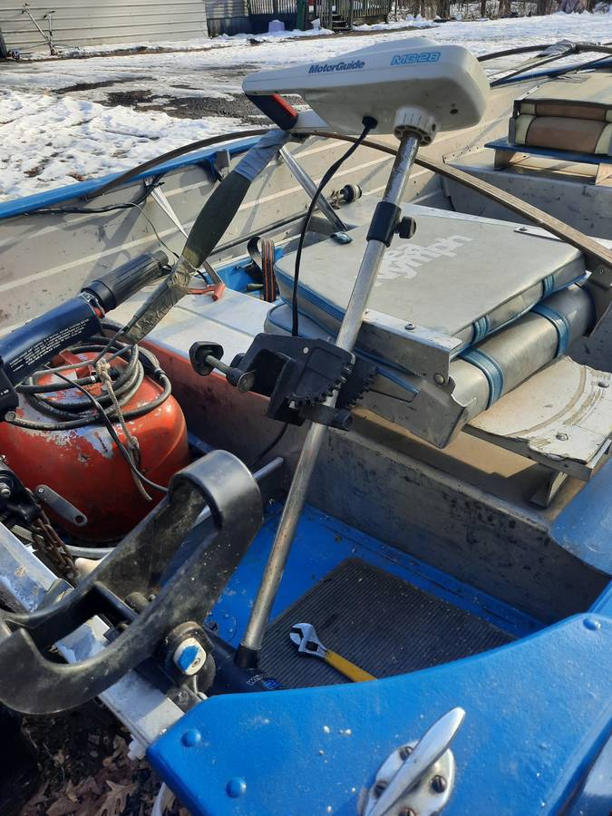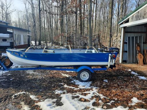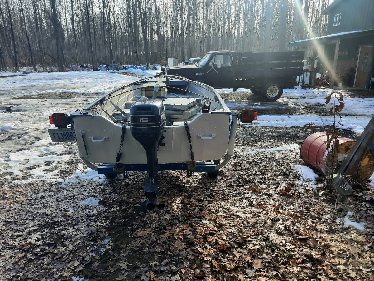 1977 aerocraft alum 14ft 15 hp evinrude trolling motor and trailer