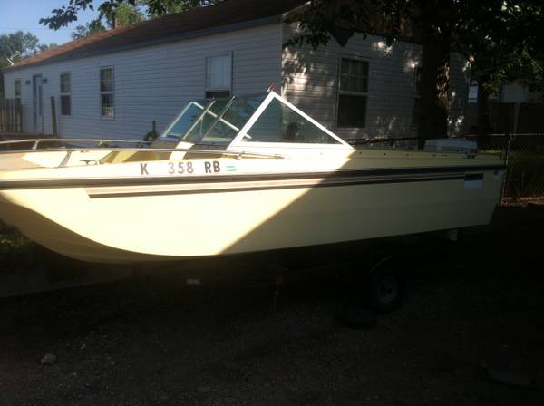 I got a project boat trying to get ride of I'm moving and got no room for it were I'm going so that's why I'm selling it. It's got a 85 Johnson motor it's been weatherised and its got brand new tires on it the boat just needs a new wood floor in it and seats. The brand of the boat is a browning montego.