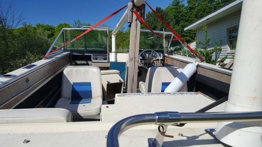17ft Browning/Aerocraft Mustang 1 with the Mercruiser 140 3.0 inboard and pre alpha outdrive. Runs great, just replaced impeller and housing and shift shaft seal in lower unit. Have had it out on the water the past couple weekends. Boat has its flaws could use some new carpet but the seats have no rips or tears and a good cleaning will help a lot. Will do a sea trial for a serious buyer. Trailer is a single axle could use new fenders and a coupler but tows fine as is.$1100obo