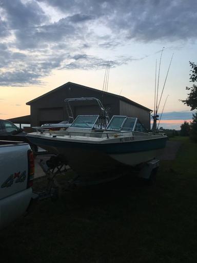 17ft Browning/Aerocraft Mustang 1 with the Mercruiser 140 3.0 inboard and pre alpha outdrive. Runs great, just replaced impeller and housing and shift shaft seal in lower unit. Have had it out on the water the past couple weekends. Boat has its flaws could use some new carpet but the seats have no rips or tears and a good cleaning will help a lot. Will do a sea trial for a serious buyer. Trailer is a single axle could use new fenders and a coupler but tows fine as is.$1200obo